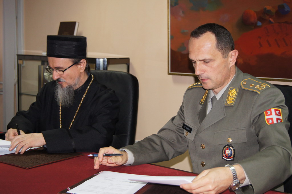 Споразум су потписали начелник Војне академије, генерал–мајор Младен Вуруна, и председник Одбора за верску наставу Архиепископије београдско–карловачке СПЦ, епископ хвостански Атанасије (Ракита).