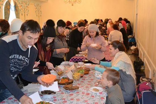 На кулинарном форуме были презентованы более пятидесяти различных постных блюд, которые его участники приготовили заранее. На вкус их оценила специальная комиссия, состоящая из сотрудников богословских курсов.