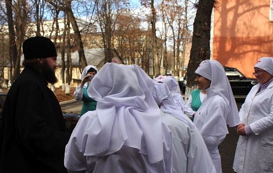 "И как каждое зернышко четок ты, затаившись, должен подержать в руках, так и каждого человека ты должен удержать в своем внимании". Владыка благословляет сестер милосердия, 7 декабря 2012 г., Пятигорск