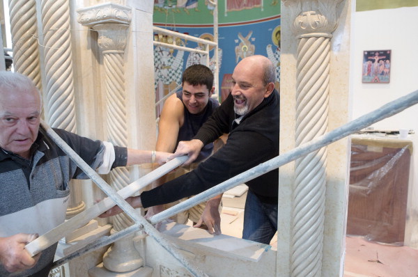 Piece by piece since mid-November, Soleiman Shalhoub, 48, has been installing a stone iconostasis, a room-wide screen separating the sanctuary from the nave, at St. George Orthodox Church, 3650 Cottage Grove Ave. SE.