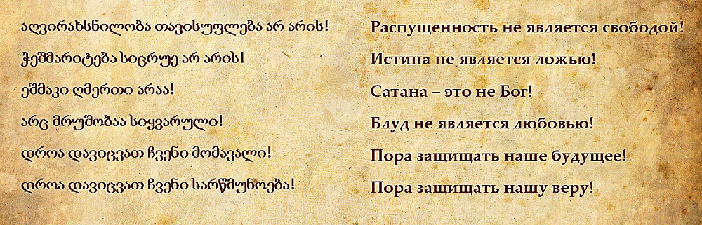 Принцип либерализма таков: абсолютной истины не существует. Существует правда двойных стандартов, так как истина для них – понятие относительное. Как бы кто ни думал, я должен признавать это за истину, потому что он считает это истиной. Возникает вопрос: если у каждого своя истина, где же тогда ложь? Ложь скрывается под видом истины. Нам говорят: у каждого человека есть своя правда, и мы должны уважать мнение другого и не имеем права возразить против его заблуждений, так как это не «толерантно». А где же тогда Истина? Мы вычеркнули ее? Бог является абсолютной Истиной. В Грузии никогда не притеснялись другие вероисповедания. Однако мы говорим, что они не истинны. Говорить это – не преступление и не отсутствие любви. Наоборот, когда мы говорим об их заблуждениях и стараемся исправить их, мы показываем свою любовь к ним. Мы с любовью говорим им: если продолжите идти по этому шаткому пути – погибнете. Вы – образ Божий, но вы потеряли Бога. Придите к Богу! Либерализм не спасет вас, а Христос спасет.