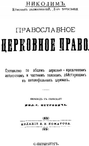 [xv] Никодим епископ Далматинский. Православное церковное право. Санкт-Петербург. 1987. С. 16.