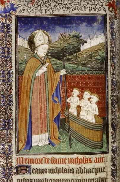 In France, the story is still told today of three little children who were lost and captured by an evil butcher, who murders them. St. Nicholas appeared and poured out his prayer to the Lord, Who returned them to life and to their bereaved parents.