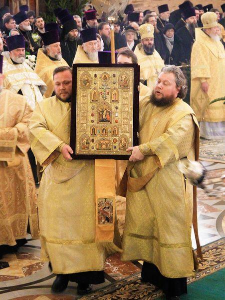 19 августа 2000 года, в день великого освящения Храма Христа Спасителя, по благословению Святейшего Патриарха Алексия II и с разрешение дирекции Музеев Кремля мы с крестным ходом обнесли частицу Ризы Господней вокруг храма, и весь этот день она пребывала в Храме Христа Спасителя. Конечно, потом мы вынуждены были отдать ее обратно в музей, и только в 2007 году по просьбе покойного Патриарха Алексия II было принято решение передать ее и некоторые другие святыни, которые также хранились в кремлевских музеях, Русской Православной Церкви.