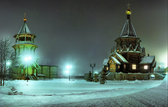 | Благовещенский кафедральный собор Нарьян-Мара в полярную ночь. Фото: Роман Хурда |