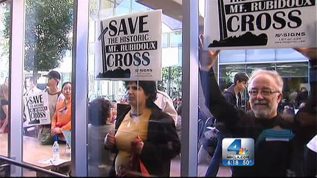 On Tuesday, resident John Harris joined some 150 people to march in support of the 35-foot cross. They want the city to fight the legal challenge against the landmark.