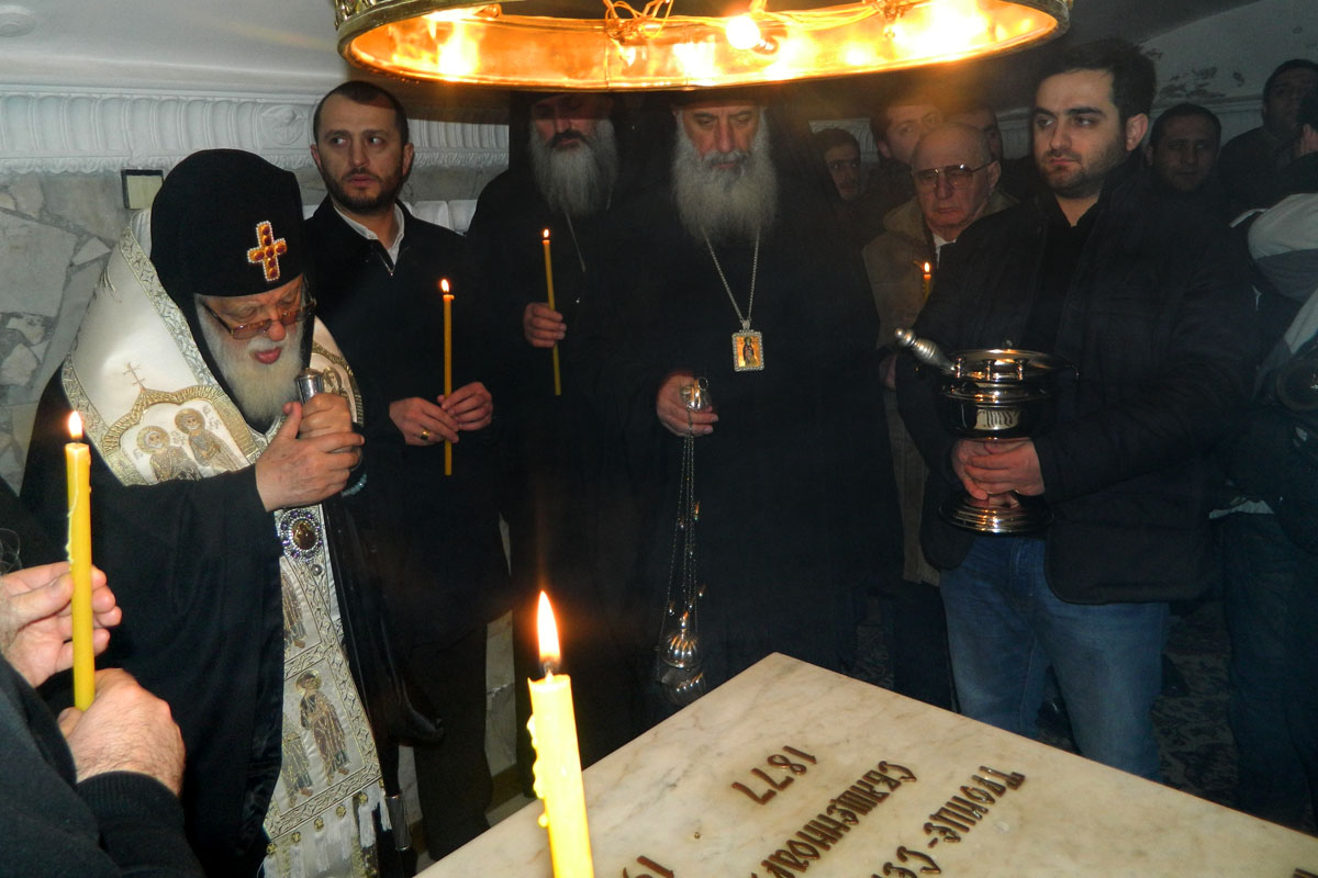 Его Святейшество и Блаженство и делегация Грузинской Православной Церкви поклонились святыням, находящимся в Серапионовой палате. Далее они проследовали в крипту Успенского собора; там Святейший и Блаженнейший Католикос-Патриарх всея Грузии Илия II отслужил панихиду у гробниц приснопамятных Святейших Патриархов Алексия Ι и Пимена. За поминальной службой молились члены грузинской делегации, наместник Лавры архиепископ Сергиево-Посадский Феогност, ректор МДАиС архиепископ Верейский Евгений, духовенство и братия Лавры.