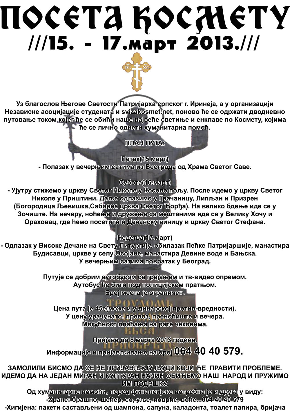 ЗАМОЛИЛИ БИСМО ДА СЕ НЕ ПРИЈАВЉУЈУ ЉУДИ КОЈИ ЋЕ ПРАВИТИ ПРОБЛЕМЕ. ИДЕМО ДА НА ЈЕДАН МИРАН И КУЛТУРАН НАЧИН ОБИЂЕМО НАШ НАРОД И ПРУЖИМО ИМ ПОДРШКУ.