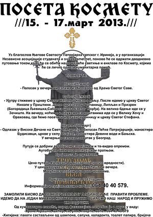 - Ујутру стижемо у цркву Светог Николе у Косово пољу. После идемо у цркву Светог Николе у Приштини. Даље одлазимо у Грачаницу, Липљан и Призрен