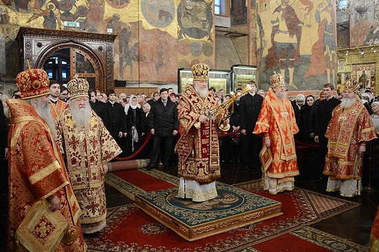 «Если бы не было примера новомучеников и исповедников, как во многих других странах, где все очень просто, где отказ от Бога, идолопоклонство как бы вытекают из жизни тех поколений, которые предшествовали нынешнему. Часто отказ от веры, от Бога, разрыв с христианской традицией некоторыми воспринимаются как естественное развитие философской мысли. Не было у них этого страшного урока наказания Божьего за идолопоклонство! Но наш народ имеет этот урок и имеет пример великих святых новомучеников и исповедников. И поэтому мы должны иметь и способность отражать всякие соблазны идолопоклонства», — заключил Святейший Патриарх.