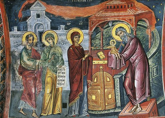 | Сретение Господне. Фреска монастыря Дионисиат, Афон |