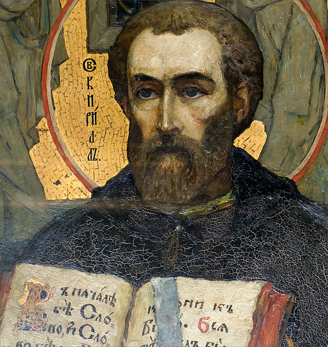 Философ же отошел в Царьград. И повидав цесаря, жил в безмолвии, молясь Богу, в церкви Святых Апостолов сидя.