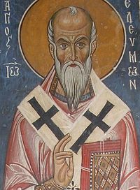 «Однажды по дороге в больницу он встретил нищего и велел дать ему шесть серебряных монет. Нищий, переменив одежду, обогнал патриарха и снова стал просить милостыню. Слуга шепнул святителю Иоанну, что этот человек уже получил от них деньги, но святитель велел подать ему столько же, сколько и в первый раз. А странник снова переоделся и в третий раз попался патриарху на дороге.