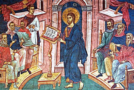 ...И возвратился Иисус в силе духа в Галилею; и разнеслась молва о Нем по всей окрестной стране. И пришел в Назарет, где был воспитан, и вошел, по обыкновению Своему, в день субботний в синагогу, и встал читать. Ему подали книгу Исайи-пророка. Он, раскрыв книгу, нашел место, где было написано: «Дух Господень на Мне; ибо Он помазал Меня благовествовать нищим, и послал Меня исцелять сокрушенных сердцем, проповедывать пленным освобождение, слепым прозрение, отпустить измученных на свободу, проповедывать лето Господне благоприятное». И, закрыв книгу и отдав служителю, сел; и глаза всех в синагоге были устремлены на Него. И Он начал говорить им: «Ныне исполнилось писание сие, слышанное вами».