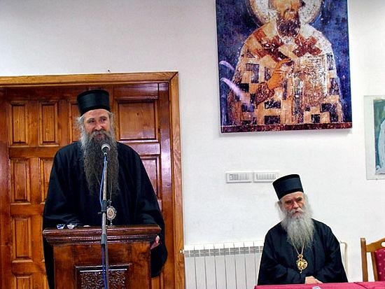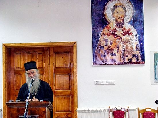 “Тај начин молитве јесте исихастичка молитва, а то је духовни подвиг, двиг молитвеног тиховања, како ријеч исихазам преводи наш Свети Отац Јустин. Молитвено тиховање, које је уткано у предање Цркве Божије од најстаријих времена, дошло је са Синаја. Молитвено искање Господа, сазрело код монаха синаита, а у то вријеме био је веома познат Свети Григорије Синаит, преко Крита, данашње сјеверне Грчке, Епира и Метеора доспјело је и до Свете Горе. Ово древно молитвено предање, које се везује још за Светог пророка Илију, обновљено је, дакле, на Светој Гори, која је, од самог почетка, била њиме усмјерена и запечаћена“, напоменуо је у уводном дијелу излагања Архиепископ цетињски Г. Амфилохије.