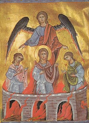 Отроки в пещи Вавилонской с ангелом.