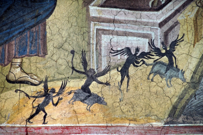 | Исцеление Гадаринских бесноватых. XIV в. Фрагмент фрески |