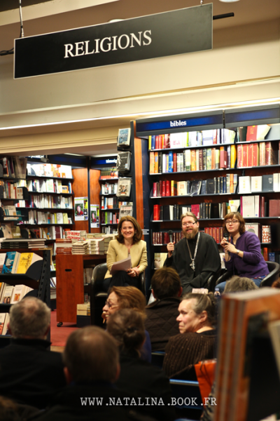 | Archimandrite Tikhon presenting the French edition of Everyday Saints at the libairie La Procure, Paris. |