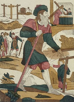 | Гравюра, изображающая Агасфера перед распятием |