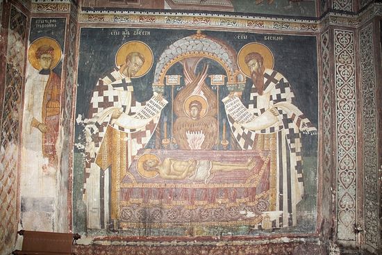| Литургия святых Иоанна Златоуста и Василия Великого; Балканы. Сербия. Дечаны; XIV в.; местонахождение: Сербия. Косово. Монастырь Высокие Дечаны. Нартекс |