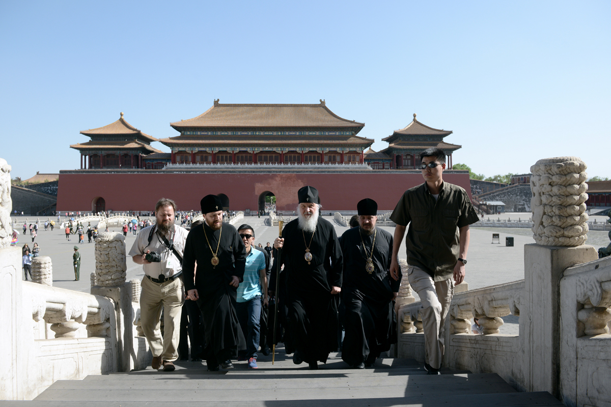 Входя в Запретный город, Святейший Патриарх сказал: «Наверное, каждый китаец мечтает побывать здесь». C этим согласился экскурсовод, который рассказал Его Святейшеству и сопровождавшим его людям об этом историческом памятнике.