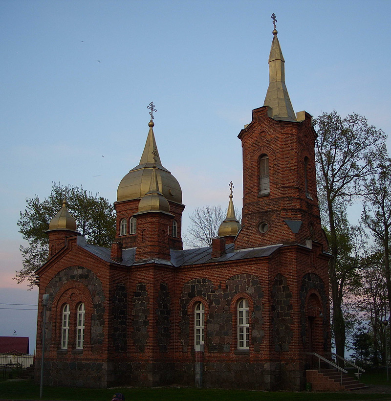 После беседы мы с батюшкой и его детьми немного прогулялись вдоль берега Чудского озера, хотя пришлось несладко: нас атаковали тучи комаров. На следующий день в церкви был престольный праздник: перенесение мощей святителя Николая. С утра отец Вячеслав совершил водосвятный молебен, потом отслужил литургию. Людей пришло немало, наверное не меньше 40 человек, причем не только женщины, но и мужчины среднего возраста. После богослужения прихожанам было предложено угощение, но многие люди ушли, так и не отведав чая с пирожками. Пришлось часть снеди забирать с собой.