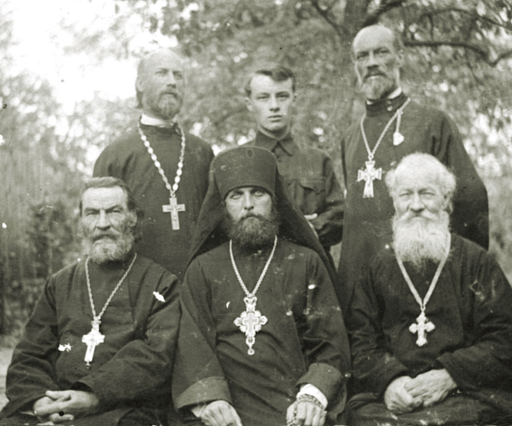 Сидят (слева направо): протоиерей Димитрий Федотьев, архимандрит Георгий (Садковский, будущий епископ), протоиерей Анатолий Авдеевич Правдолюбов; стоят (слева направо): иерей Николай Анатольевич, Анатолий Сергеевич и протоиерей Сергий Анатольевич Правдолюбовы. Перед заключением на Соловки, г. Касимов Тем не менее, в 1935 году отец Сергий снова был арестован и отправлен на Соловки. Вместе с ним было арестовано более десяти человек, среди которых были его сын Анатолий, двадцатилетний юноша, и двое братьев: иерей Николай (канонизирован 27 декабря 2000 года как священномученик) и Владимир (канонизирован 20 августа 2000 года как мученик). Причиной ареста послужило составление иереем Николаем и Владимиром Анатольевичем жизнеописания всеми почитаемой Матроны Анемнясевской (канонизирована 22 апреля 1999 года как блаженная и исповедница) и двух местночтимых подвижников благочестия — царевича Иакова (XVII век) и Петра Отшельника (современника преподобного Серафима Саровского). Составление таких книг в то время считалось преступлением.