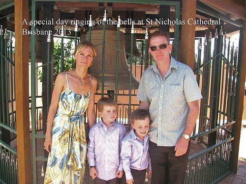 Семья Магдейд во дворе Свято-Никольского собора в Брисбене во время концерта колокольных звонов. 2013.