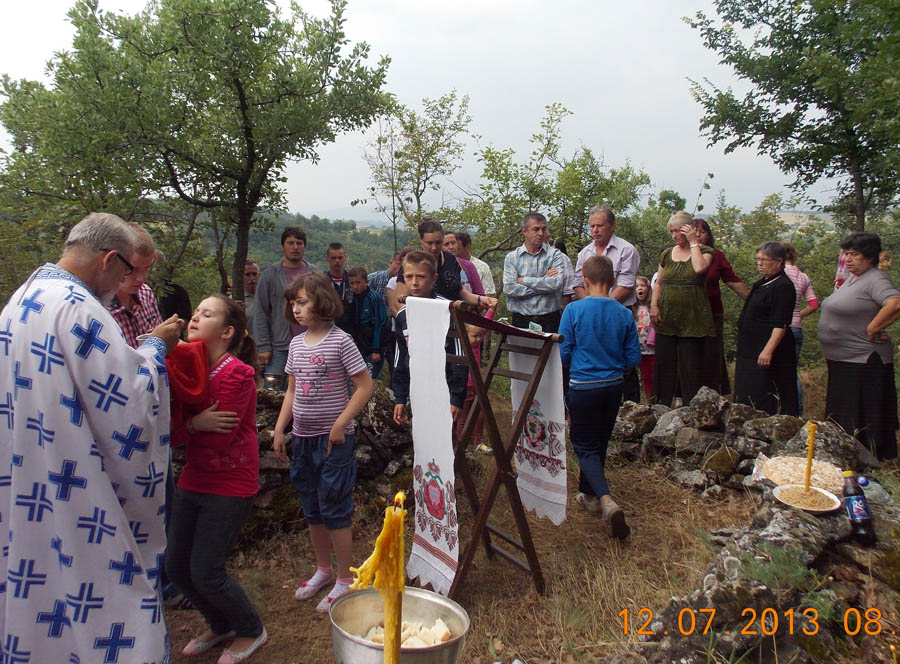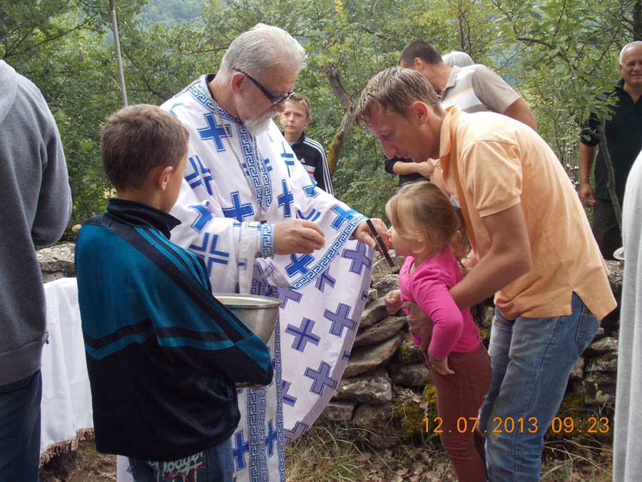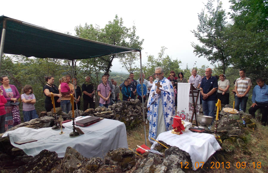 -Господ је рекао да ће на камену, на чврстим темељима, градити цркву, где је нико не може разрушити. А ми знамо, кроз историју, да су наши људи, кроз векове градили, и обнављали наше светиње, што нам сведоче и ове светиње које у Великој Хочи имамо. Јер где год има народа има и цркава, где год има камена темељца, има и црквава. Ми смо данас дошли на ово свето место, иако је у рушевинама, где су вековима долазили наши преци и клањали се апостолима Петру и Павлу. Недалеко одавде се налази храм Светих врача Козме и Дамјана, који је у ближој прошлости био срушен, а ових дана се опет уздиже велелепни манастир и монаси у њему обитавају. Даће Бог да и овај храм обновимо, а до тада да нам Свети апостоли Петар и Павле помогну да издржимо. Ова бурна времена ће проћи и награда ће доћи за оне који чине добро, а ми да се помолимо и за наше непријатеље, да нам цркве не руше, децу не убијају народ не прогоне, него да се и они врате истини и спасењу.