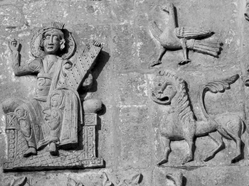 | Все уцелевшие храмы Владимирской Руси украшены барельефами Давида с псалтирью |