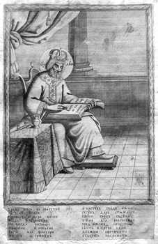 | Псалтирь рифмотворная, конец XVII века, гравюра «Царь Давид» |
