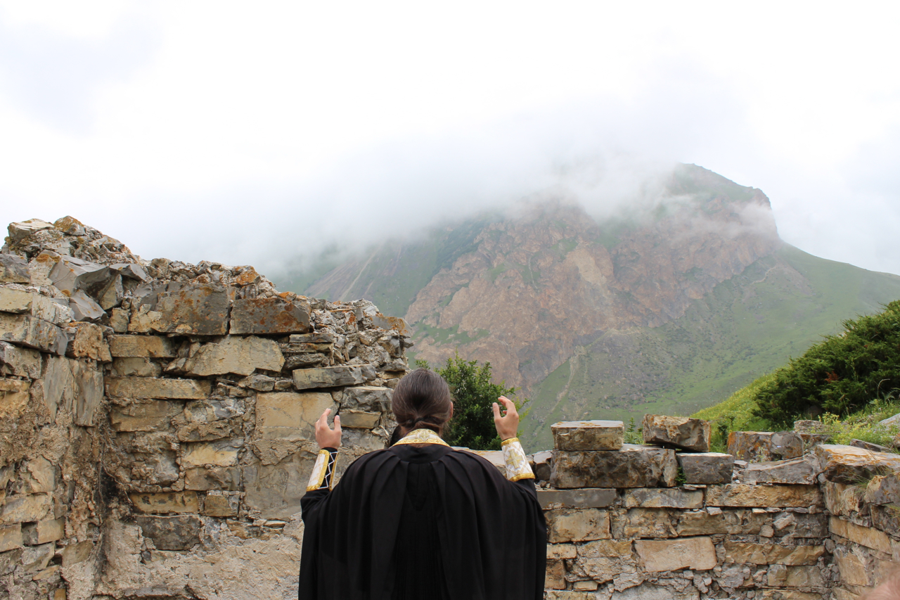 Нашим маленьким – настоятель Георгиевского храма Тырныауза, староста Саша и я – крестным ходом с Моздокской иконой Божией Матери мы выходим на вершину Тотура, чтобы по благословению епископа Пятигорского и Черкесского Феофилакта помолиться там Пресвятой Богородице о Кавказе.