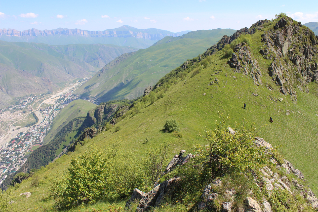 До самой вершины мне не дойти – выйдя на перевал между ущельями и посмотрев со склона, обращенного к Тырныаузу, на город (а он выглядит, как с борта самолета), я пасую. Друг Саша остается со мной, а отец Игорь уходит по крутым скалам наверх, и мы смотрим с перевала, как то возникает, то исчезает вдалеке черная фигура. Наконец едва различимый – только белеет епитрахиль – он встает на самой вершине Тотура, а мы – на своем перевале, и над скалами снова несется: