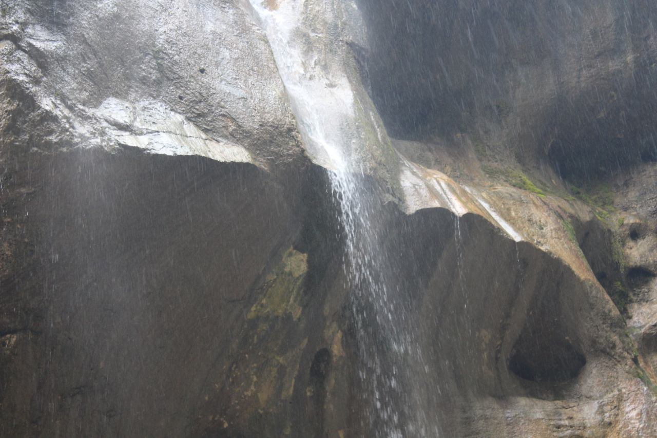 Со скал стремительно слетает вода – когда солнечно, над Чегемскими водопадами зависает радуга, но сегодня у погоды другой настрой: серебро и хрусталь струятся вниз с темных скал строго и почти аскетично. Дорога забирает вверх, и наша машина становится единственной, по-прежнему стремящейся вперед – чужие тут не ходят, а если и ходят, то очень редко.