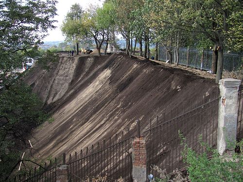 Мокрые пластмассовые стулья, залитые дождем круглые столы. Мерзнущая и скучающая от безделья продавщица в питейном заведении (кто же захочет в такой промозглый день сидеть под дождем на продуваемом всеми ветрами валу?). Поржавевшая ограда с наглухо закрытой калиткой, через которую когда-то можно было пройти к памятнику Софийскому полку… Ныне всё здесь заросло сорняками, замусорено. Монумент поврежден хулиганами… Да, «печально я гляжу на наше поколенье…»
