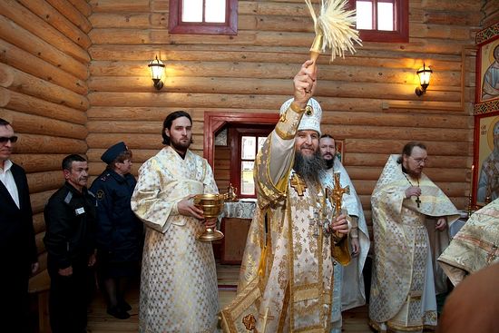 За богослужением молились начальник регионального УФСИН РФ генерал-майор внутренней службы Анатолий Киланов, его заместитель полковник внутренней службы Ольга Думина, руководство больницы и заключенные.