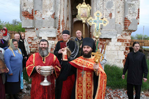 Вместе с назначенным сюда для восстановления храма иеромонахом Иоанном (Кесариным) жители – в основном женщины, старики и дети – вручную, лопатами и кирками вычищали завалы.