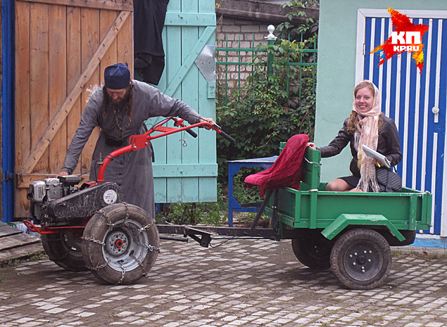 С этими словами отец Владимир скрылся в одной из хозяйственных пристроек на территории храма, мы замерли в ожидании. Минуту спустя раздался чудовищный рев и из ворот стремительно выехало нечто, напоминающее мотоблок…