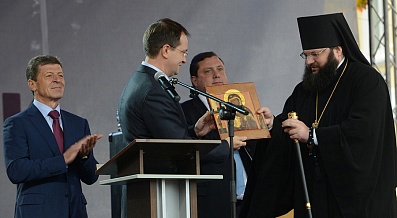В своем выступлении В.Мединский отметил: «Так совпало, что сегодня не только праздник Смоленска, но и большой православный праздник. 21 сентября — день Рождества Богородицы. Некоторое время назад офицеры ФСБ провели успешную операцию и не позволили контрабандистам вывезти из России набор ценных древних икон. Эти иконы были сохранены и тщательно отреставрированы в музее города Смоленска. И сейчас от имени Министерства культуры я хотел бы передать их Смоленской епархии».