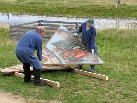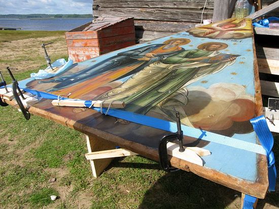 Как сообщили в пресс-службе Кенозерского национального парка, планируется реставрация угловых граней и центрального медальона с изображением. Этот этап работ пройдет в следующем году в Москве. Завершится реставрация осенью 2014 года.