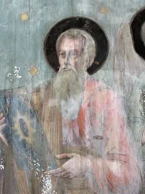 «Небеса» с обращением апостолов известны только в Кенозере. Исключение - небо Ильинской церкви города Белозерска, сохранившие аналогичную программу росписи. Апостолы представлены в развороте, в молельном движении, которое начинается от грани, направленной к западной стене: в стороне находятся апостолы Фома и Филипп. Шествие апостолов, направленное к востоку, завершается композицией «Распятие», расположенной над иконостасом.