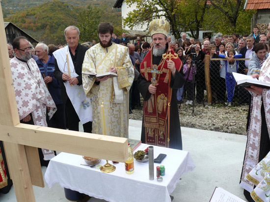 Након Литургије и пригодне ј беседе, којом се обратио својим саплеменицима, Епископ се упутио у родно село, где је осветио темеље капеле посвећене Васкрсењу Христовоме, а која се подиже у спомен на исповједнике и мученке за православну вјеру који су пострадали 4. септембра 1941. године од усташа.