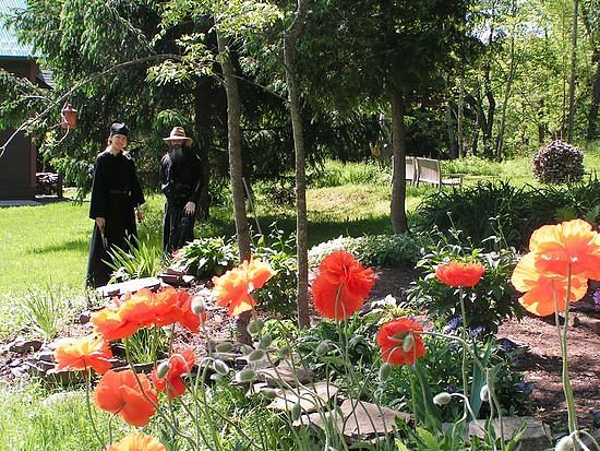 Сад у нашем братству има 11 људи који су дошли из различитих крајева. Бивши римокатолик са Филипина – јерођакон – дошао је код нас, постао је православац. Код нас има монаха из Порторика, Грузије, Украјине, Молдавије, Русије (из Сибира), из различитих крајева Америке. Најмлађи међу њима има 19 година, а најстарији 48. Постоји велика разлика међу браћом по нивоу образовања: већином су то људи с универзитетским дипломама, али има и оних који немају универзитетско образовање или је оно минимално. Наш живот је једноставан. Монаси ретко излазе ван зидина манастира – практично се стално налазе у њему.