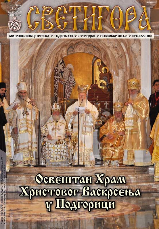Уочи Лучиндана и Светога Петра Цетињског из штампе је изашла нова „Светигора“. Овај 229-230 новембарски двоброј образника за вјеру, културу и васпитање Митрополије црногорско-приморске, по својој тематици, у ствари, је наставак претходног броја посвећеног храму Христовог васкрсења у Подгорици. Прве странице доносе посланицу Архиепископа цетињског Митрополита црногорско-приморског господина Амфилохија, поводом 1700 година Миланског едикта и oсвећења саборног храма Христовог Васкрсења у Подгорици, под називом „Саберимо се око храма Христовог васкрсења“. Значајан број илустрација са церемоније освећења храма и свечане академије која је претходила том чину, допуњују репортаже Раја Војиновића о овом великом догађају „Велики Божји дар и велика радост наша“ и „Историјски дан за православље“.