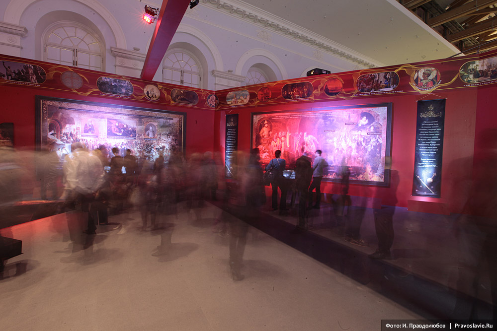 Еще одна важная деталь — организаторам блестяще удалось продемонстрировать единение могущества народа, сердцевиной действия которого было Православие, и руководства страны. Ярче всего это проявляется в разделе, посвященном войне 1812 года! Когда не только армия воевала, но и весь народ! Вот здесь была по-настоящему одержана победа русского духа. И символ этой победы — храм Христа Спасителя, указ о создании которого подписан Александром I, а создан и открыт храм уже царем Александром III. Великолепно показано величие полководческого мастерства Кутузова и подвиги таких генералов, как Раевский, Багратион, Тучков! Целая плеяда героев была помещена в Зимнем дворце Санкт-Петербурга.