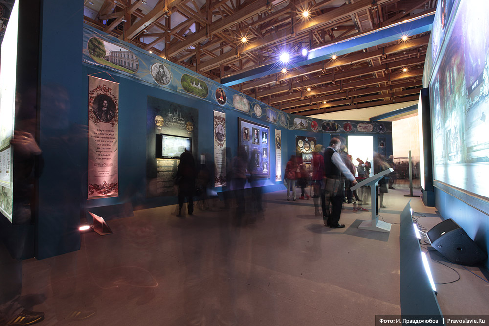 От редакции: И о Крымской и о Японской и о Первой мировой сказано подробно и о победах и о поражениях. Негативные цитаты современников о Государе Николае Втором представлены на выставке в большем количестве, чем позитивные. Подробно рассказано и о переворотах и о неприглядных деяниях, скажем об казни малолетнего сына Марины Мнишек. Относительно "запытанного" царевича Алексия у историков нет никаких данных, лишь версии. Просьба внимательно смотреть материалы, представленные на экранах выставки.