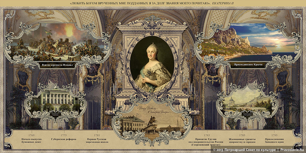 Очень правильно показана эпоха Екатерины II с точки зрения расширения границ государства, благодаря в том числе и полководческому мастерству таких гениев, как Суворов, Ушаков, Потемкин и Румянцев. Эти люди создали славу нашего Отечества.