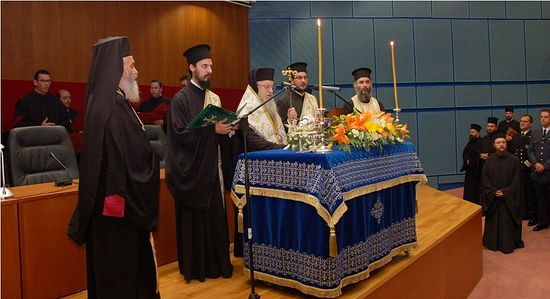 Перед открытием Совещания был совершен молебен с освящением воды, который возглавил Высокопреосвященнейший митрополит Фессалоникийский Анфим, который затем поприветствовал участников конференции.