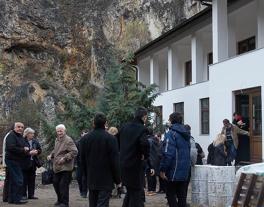 Али ми знамо, - рекао је отац Стефан,- да је крв хришћанска проливена мученичка као семе за рађање нових живота, јер они не могу убијати душу нашу и ако могу тело. Овај манастир је дао, као првина жртву, преподобномученика Харитона, али његовим молитвама и наравно Светих Архангела, ова света обитељ није запустела и ево видимо да она, иако има својих историјских момената када бива чак и затрпана, Архангели нису дали да буде заборављена, народ се ту окупљао вековима и када је све то било под земљом. И Бог је дао да, деведесетих година, крене обнова и ево, поново после 17. марта, и после свих ових недаћа, видимо да се још један конак диже у славу Божју и Светих Архангела. Ето, и Богословија је обновљена хвала Богу, народ се није вратио још увек довољно, али надамо се, иако знамо да су прилике тешке. Али, и после велике сеобе Призрен је остао са шест фамилија, онда у 17. и 18. веку, па из њега је избегло 10000 људи 1999. године. Значи ,,Бог може да учини чудо, ако је потребно и ако има коме да учини“, што је патријарх Павле говорио.