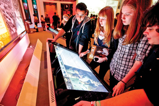 В каждом из залов мы соорудили интерактивные экраны, на которых можно изучить важные вехи истории того времени. Например, Полтавская битва. Воспроизводится расположение войск, компьютерная реконструкция боя, можно увидеть результаты сражения, покрутить фигурку солдата, посмотреть обмундирование, вооружение.